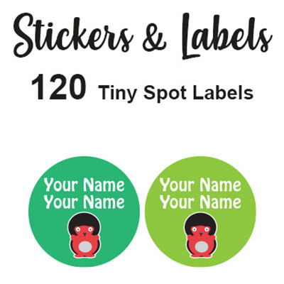 Tinz Spots Labels give the easiest way for your kids to find their belongings at school. The small round shape easily fit most of your items, and looks good on everything. Use on your lunch box, water bottle and toys.
